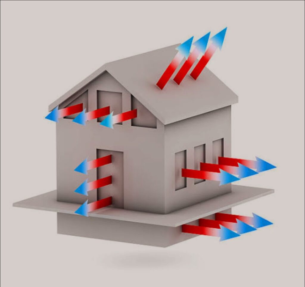 - Uninsulated or poorly insulated walls allow conduction of heat.